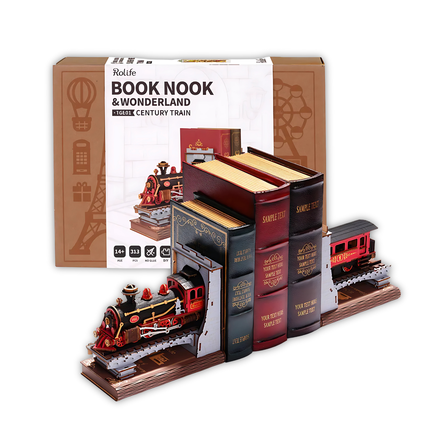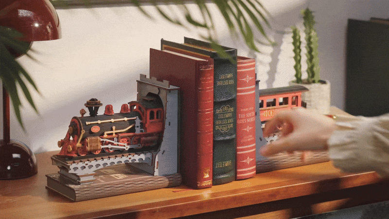 Le Book Nook Century Train vous plonge dans l'âge d'or des chemins de fer avec une locomotive à vapeur traversant un majestueux pont. Son design minutieux et ses détails raffinés en font une pièce de décoration impressionnante pour votre bibliothèque.