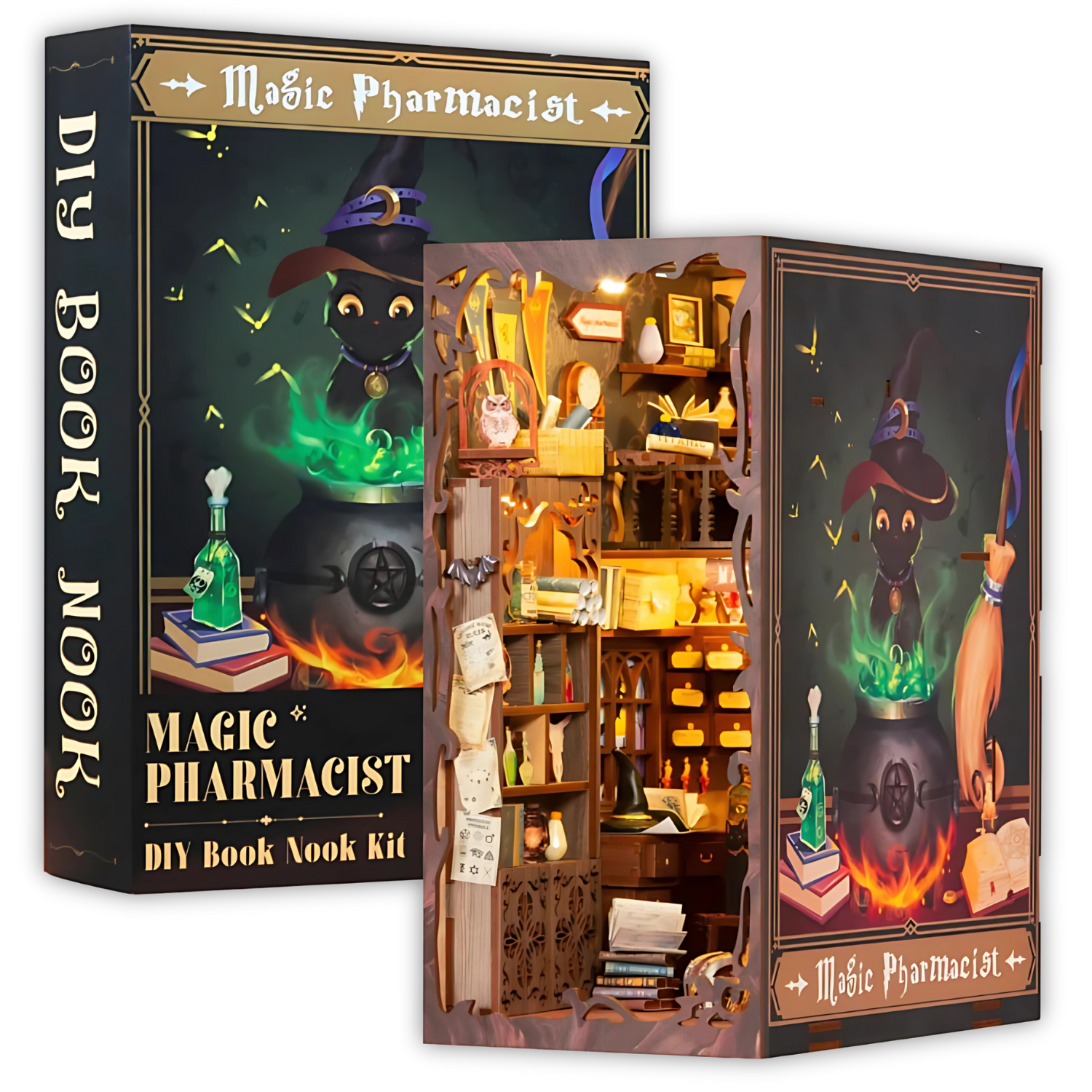 Plongez dans un univers mystérieux avec le Book Nook Magic Pharmacist, un diorama miniature inspiré de la magie et de l’alchimie. Niché dans une forêt enchantée, ce coin de lecture vous transporte dans l’antre d’un apothicaire aux pouvoirs secrets, entre potions, grimoires et créatures fantastiques.