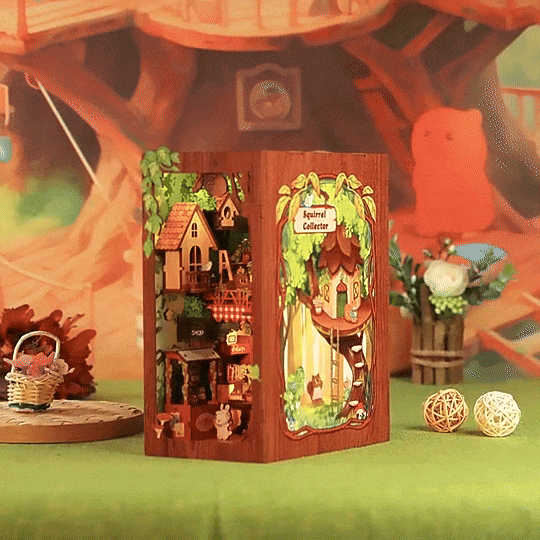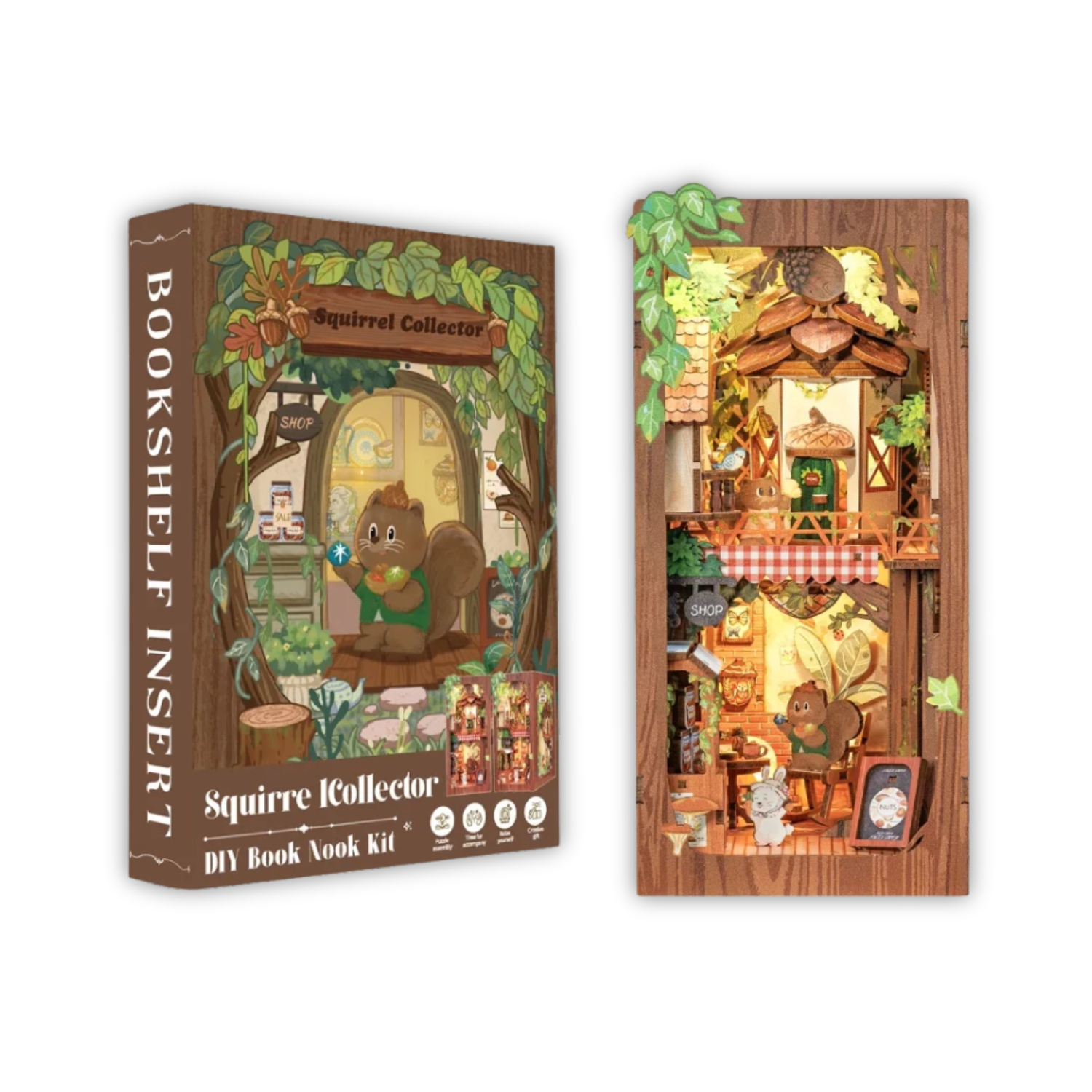 Plongez dans un univers féerique avec le Book Nook Squirrel Collector, une scène miniature nichée au creux d’un arbre enchanté. Ce diorama DIY vous transporte dans un monde de nature luxuriante, peuplé de trésors forestiers et de détails magiques. Parfait pour décorer votre bibliothèque avec originalité tout en profitant d’une expérience de montage relaxante et créative.