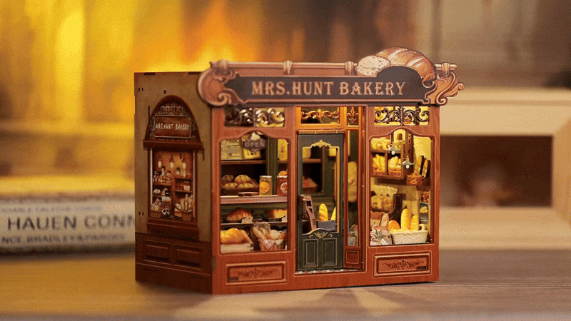 Plongez dans l'atmosphère chaleureuse et gourmande de cette Maison Miniature Mrs Hunt Bakery. Inspiré d'une boulangerie de quartier, ce diorama riche en détails apportera une touche d'originalité à votre bibliothèque.