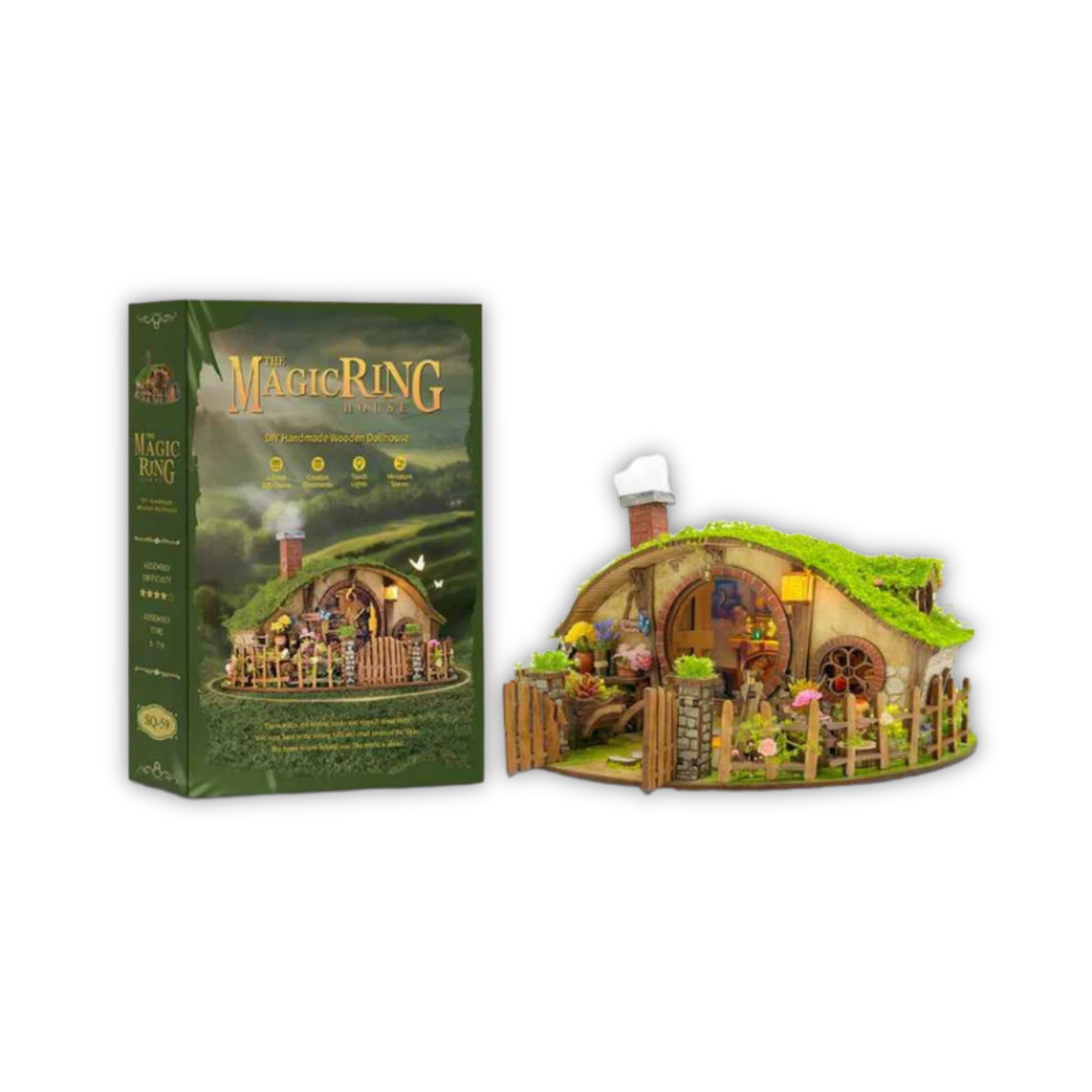 Plongez dans la caverne du Hobbit, un monde miniature chaleureux avec la Maison Miniature The Magic Ring House. Ce kit en bois comprend des meubles miniatures et un manuel coloré pour construire une scène cosy et détaillée. Parfaite pour la décoration, la collection ou un moment créatif en solo.
