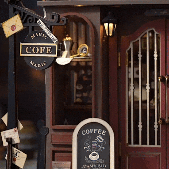 Découvrez le charme intemporel du Vintage Coffee Shop, une maison miniature en bois à assembler soi-même. Ce kit DIY délicieusement rétro vous permet de créer un café miniature cosy et détaillé, sublimé par un éclairage LED doux pour une ambiance chaleureuse. Parfait pour décorer votre intérieur ou offrir en cadeau original à tous les passionnés de DIY.