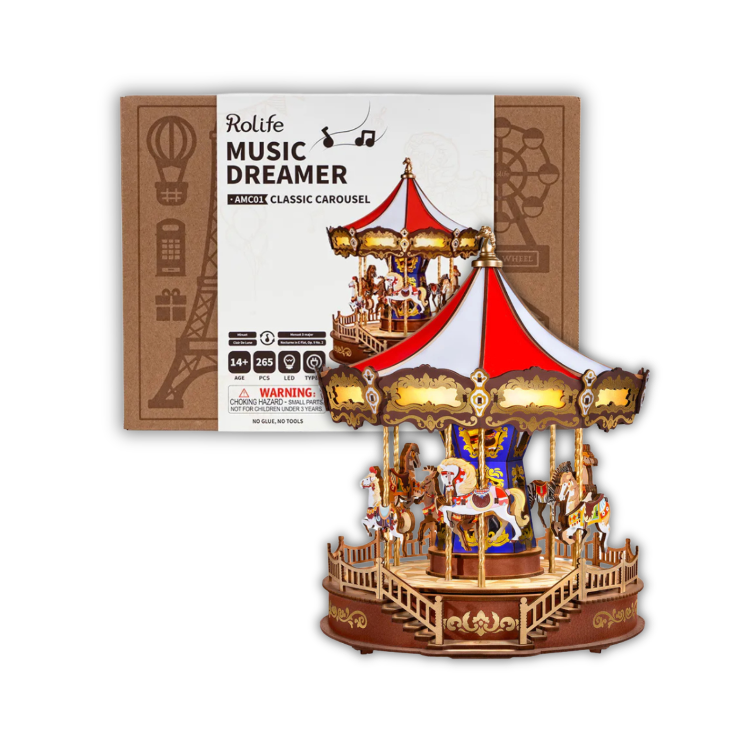 Plongez dans la magie du Puzzle 3D Carrousel Classique avec ses 265 pièces en bois, ce puzzle 3D allie charme rétro et ambiance féerique avec ses animaux animés et ses mélodies captivantes.