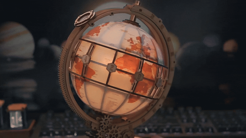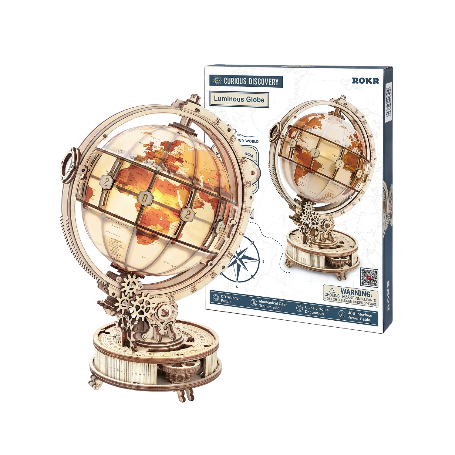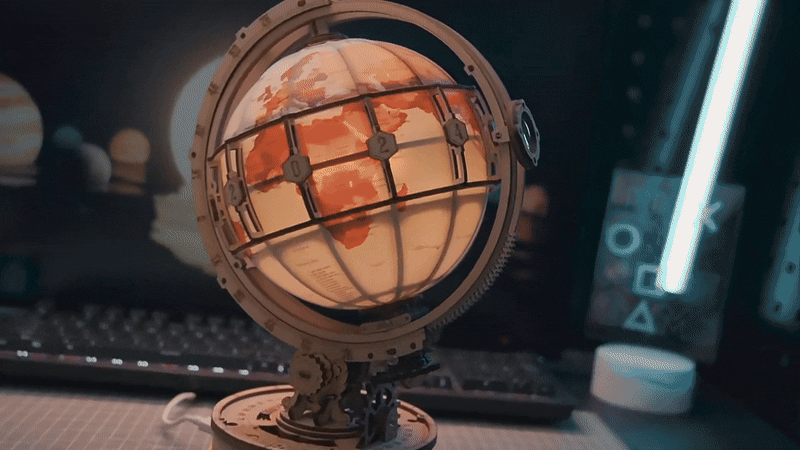 Assemblez un globe rotatif lumineux en bois grâce à ce Puzzle 3D Globe Lumineux. Une pièce unique qui allie art classique et fonctionnalité pratique, parfaite pour votre intérieur.