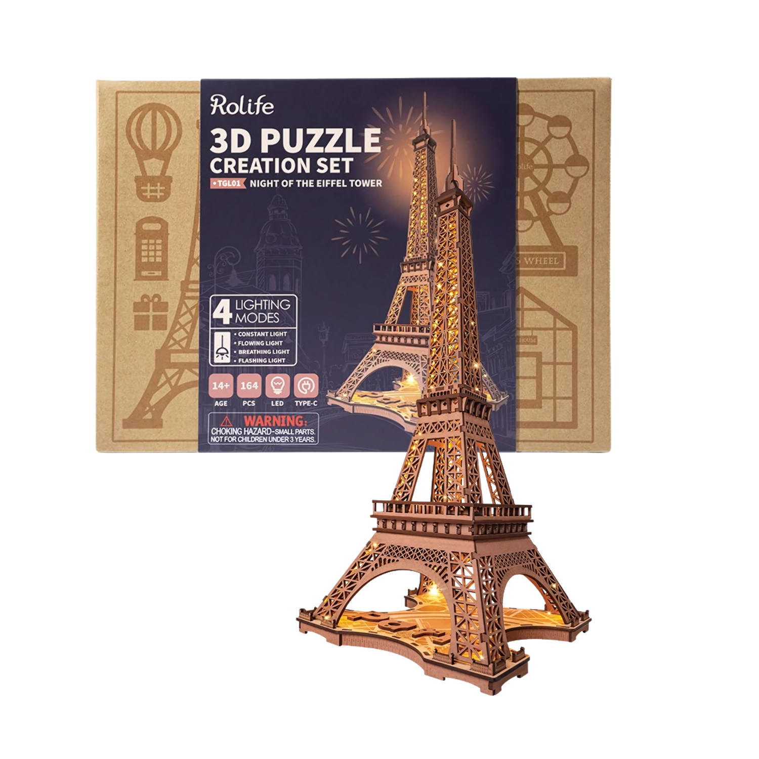 Redécouvrez l’élégance intemporelle de la Tour Eiffel avec ce puzzle 3D Nuit de la Tour Eiffel en bois. Conçu pour les amateurs de modélisme et d’architecture, ce modèle détaillé s’illumine grâce à son éclairage LED intégré. Une pièce unique qui allie créativité, précision et décoration.