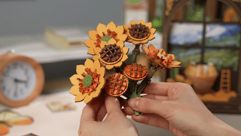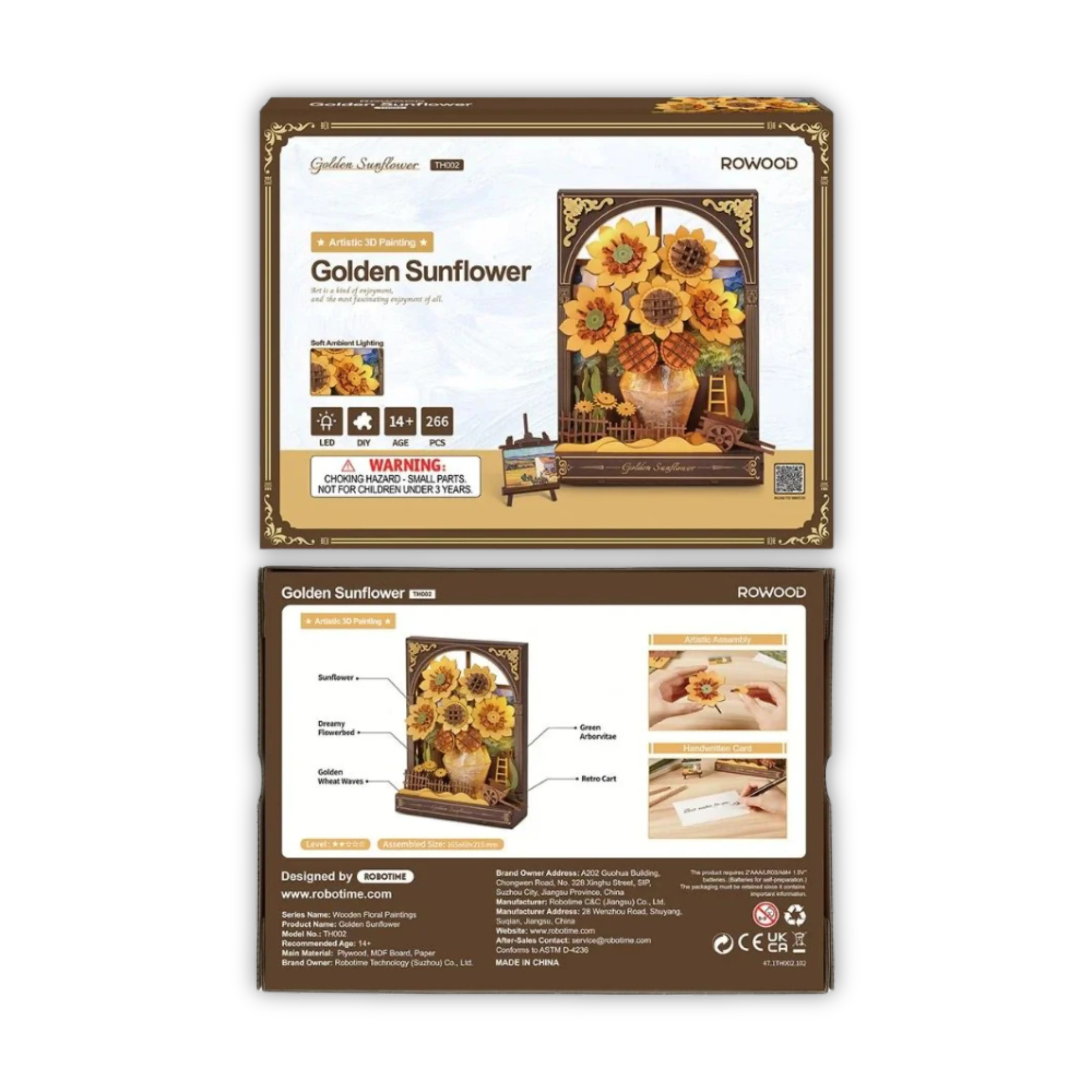 Plongez dans une ambiance solaire avec le Puzzle 3D Peinture de Tournesol Doré. Ce kit en bois assemble un élégant tournesol doré à la finition délicate, sublimé par un éclairage LED chaleureux qui crée une lumière d’ambiance douce. Idéal pour un moment DIY apaisant, il devient une pièce décorative qui attire les regards sur une étagère ou un bureau.