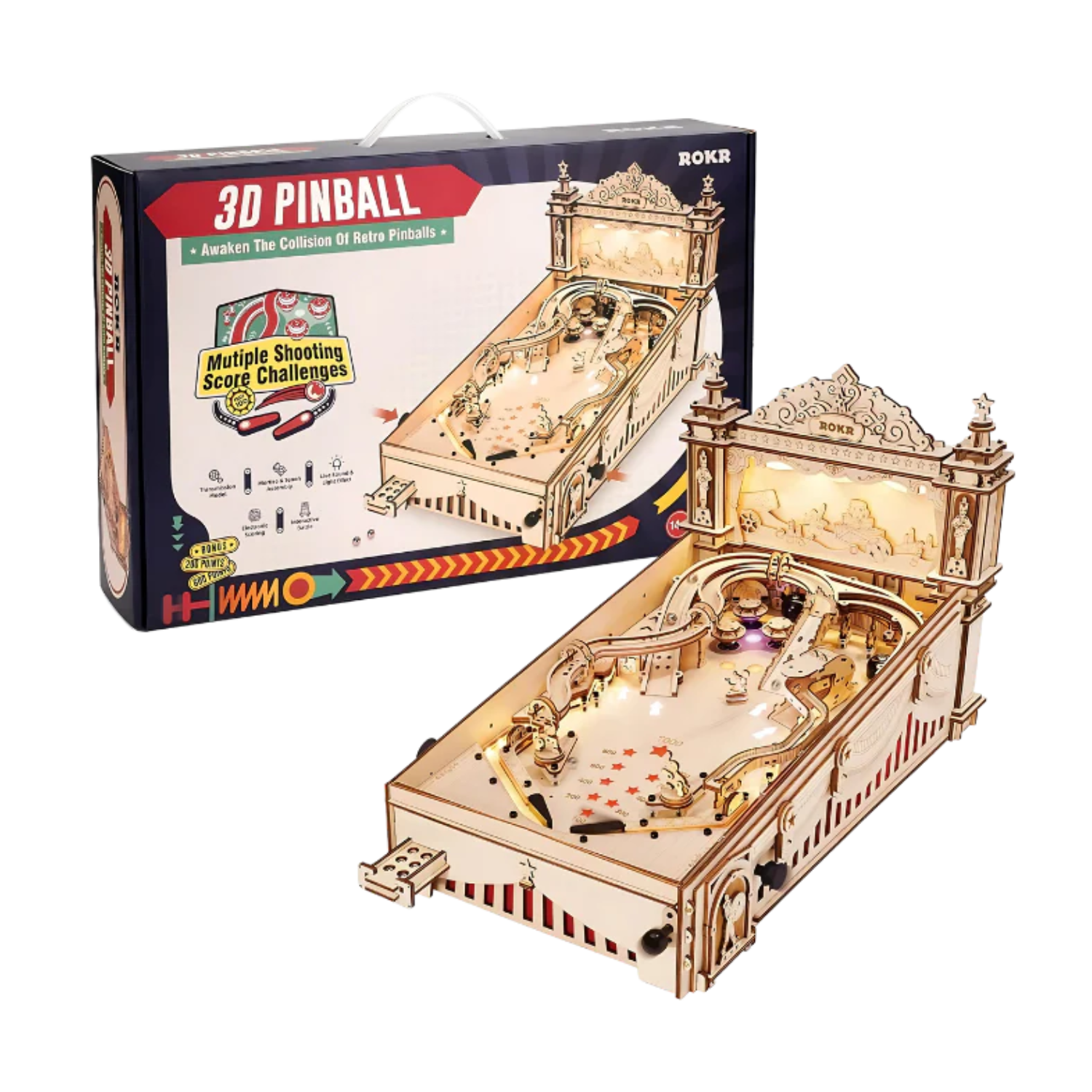 Pour les amateurs de puzzles, d'objets mécaniques et de jeux de style rétro, cette machine à pinball en bois est une idée cadeau unique.